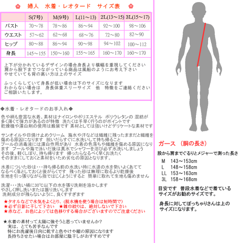 当店オリジナルバストフット水着はバストの大きい方が苦しくなくきれいに着ていただける水着です 長く支持されている人気の水着です こちらの水着はわきの下のはみ肉がすっきり入り 気になる方はこちらがおすすめ! ミセスの方が着やすい設計になっています(^^) 前身ごろ裏付きで、安心感があります お尻もしっかり入ります 足繰りはお尻はしっかり入るけどすっきり見えるカットになっています 品質 ポリエステル80% ポリウレタン20% パットは標準サイズが入っておりますが、注文時記入欄にご記入いただきますと大きいサイズに変更することができます。